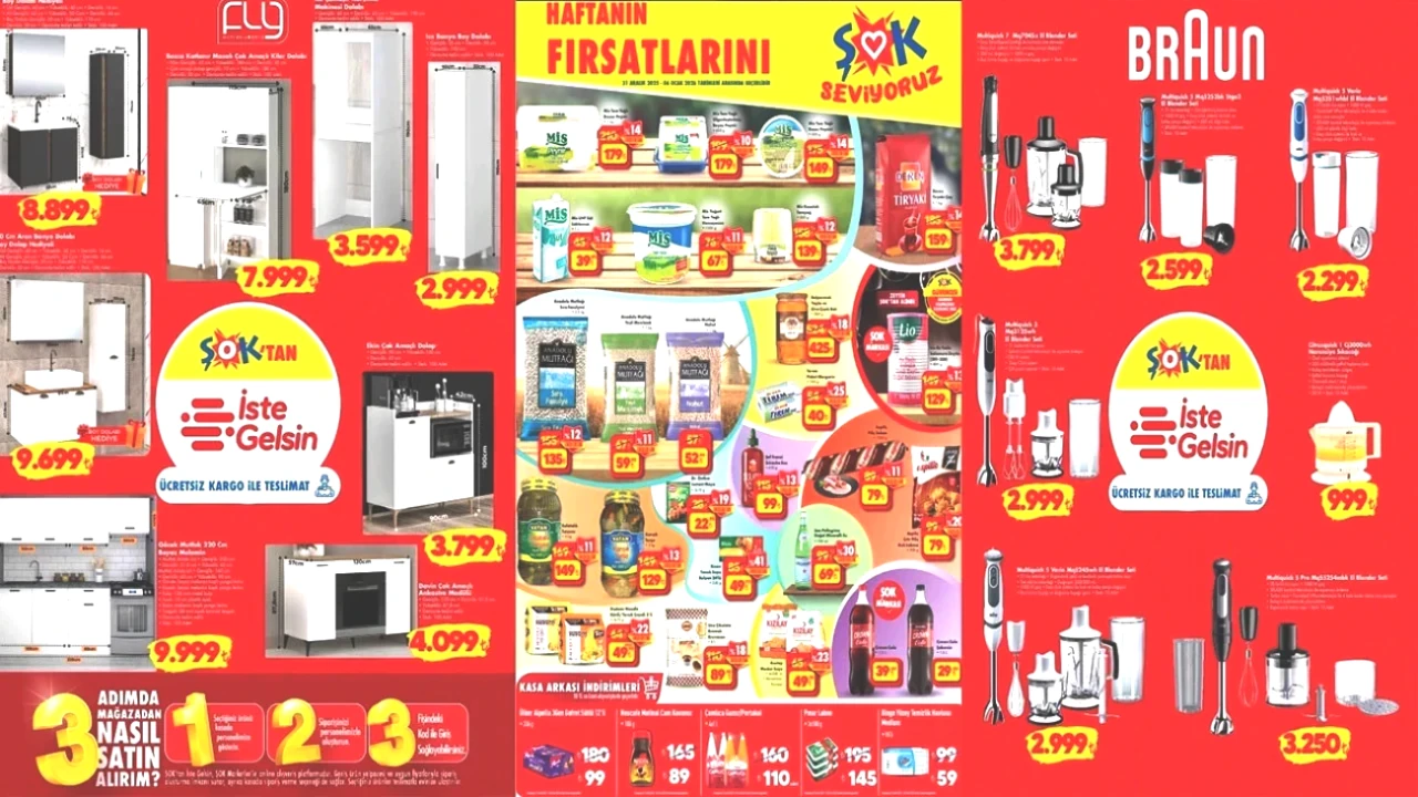 ŞOK'un 18-24 Mart tarihleri arasındaki güncel kataloğu yayımlandı. Bu katalog, ŞOK mağazalarında ve resmi web sitesinde satışa sunulacak ürünleri kapsıyor. Balıkçılık ekipmanları, kamp malzemeleri ve bahçe araçları gibi ürünlerin yanı sıra Xiaomi'den cep telefonları, TV ünitesi, şifonyer, gardırop ve zigon sehpa gibi çeşitli mobilya seçenekleri de katalogda göz önüne çıkıyor. İşte, satışa sunulacak ürünlerin tam listesi...